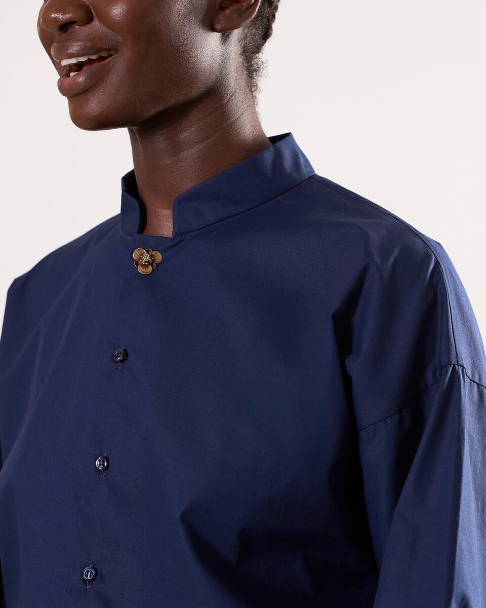 Chemise à manches kimono larges avec poignets. Possibilité de fermer le dernier bouton avec le bouton camelia lO81.