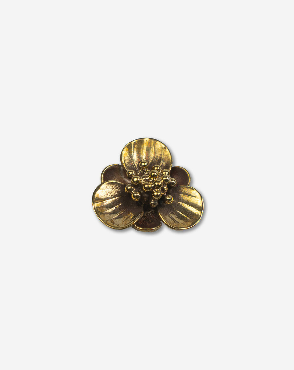 Bouton en laiton représentant la fleur du camelia sinensis. Permettant de fermer le dernier bouton de la chemise Venise lO31.